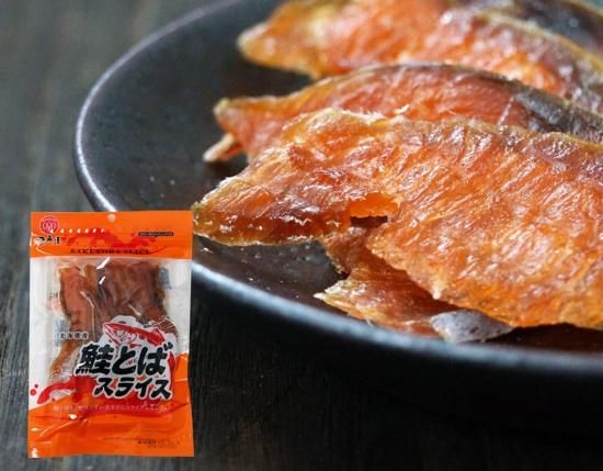 北海道産の鮭を使用し丁寧に作った鮭とばを、食べやすい厚さにスライスしました。極力、皮や骨を取り除き、食べやすい大きさにカットしています。 スライスしてもパサつき感が少なく、噛んでいるうちに鮭の旨みがあふれてきます。やわらかくソフトな食感なので、鮭とばが硬くて苦手な方にもお勧めです。